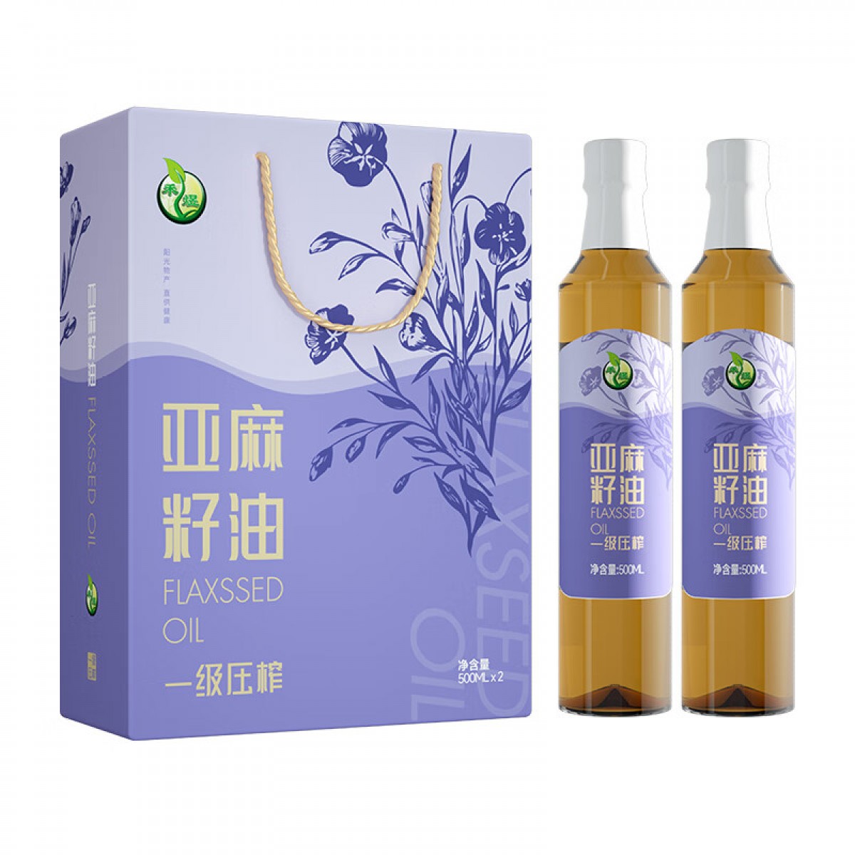 禾煜 一级压榨亚麻籽油双瓶装礼盒500ml*2/1000ml 6940431021660