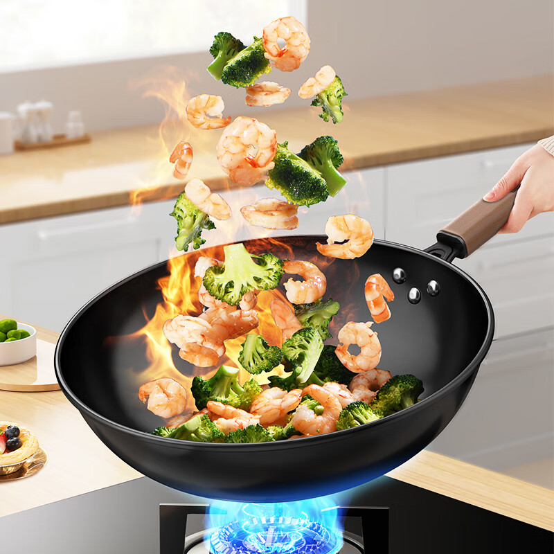 T-康巴赫 新款乐厨32cm无涂层精铁炒锅家用平底电磁炉明火通用炒菜锅铁锅 精美礼盒装带锅盖 老款LPB-C32L 新款LPB-C32LA 新款