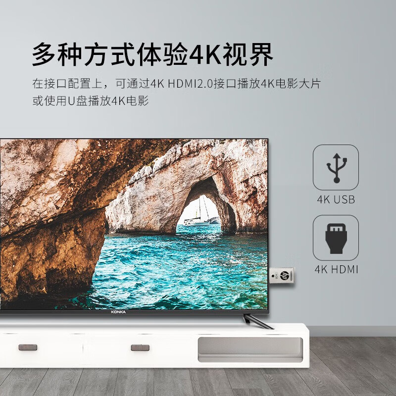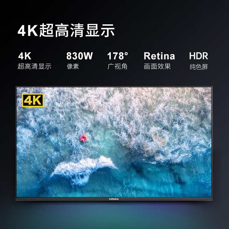 J-《热评10000+》 康佳KONKA电视 65英寸 4K超高清液晶智能电视LED65G30UE 黑色 2+32G 65G30UE
