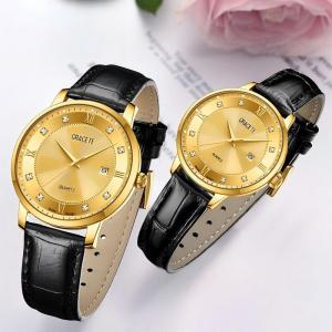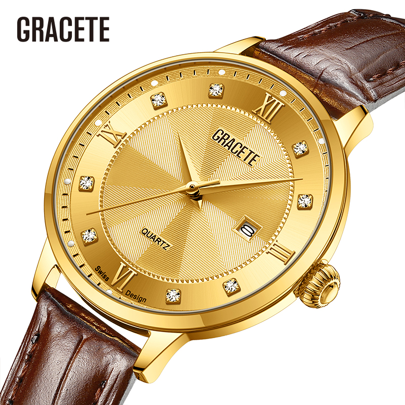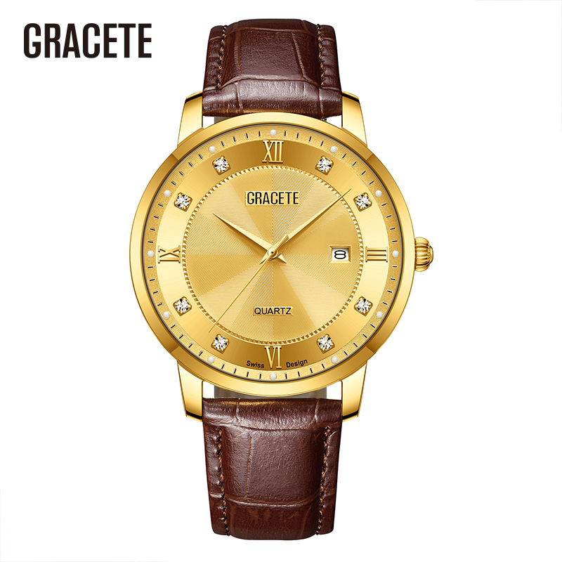 J-【普区包邮】GRACETE格雷斯特黄金岁月时尚腕表轻奢镀金镶钻石英潮流男士女士手表G8066【单表要情侣款需买2支手表每证一品赠送表带】 男款:一表两带,黑配棕