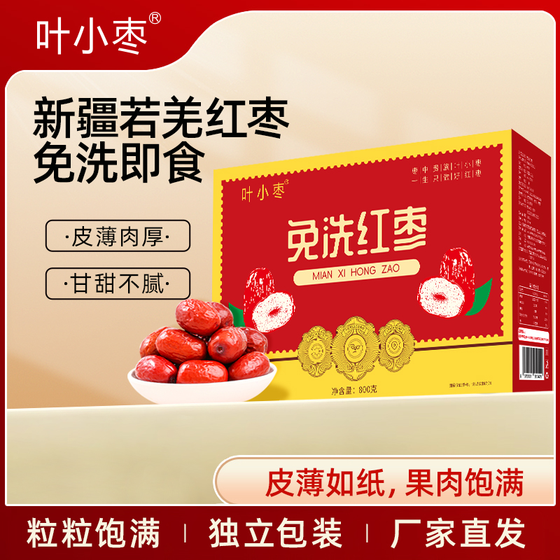 J-叶小枣高端红枣礼盒新疆若羌红枣免洗即食皮薄肉厚甘甜不腻红枣礼盒800g 800g