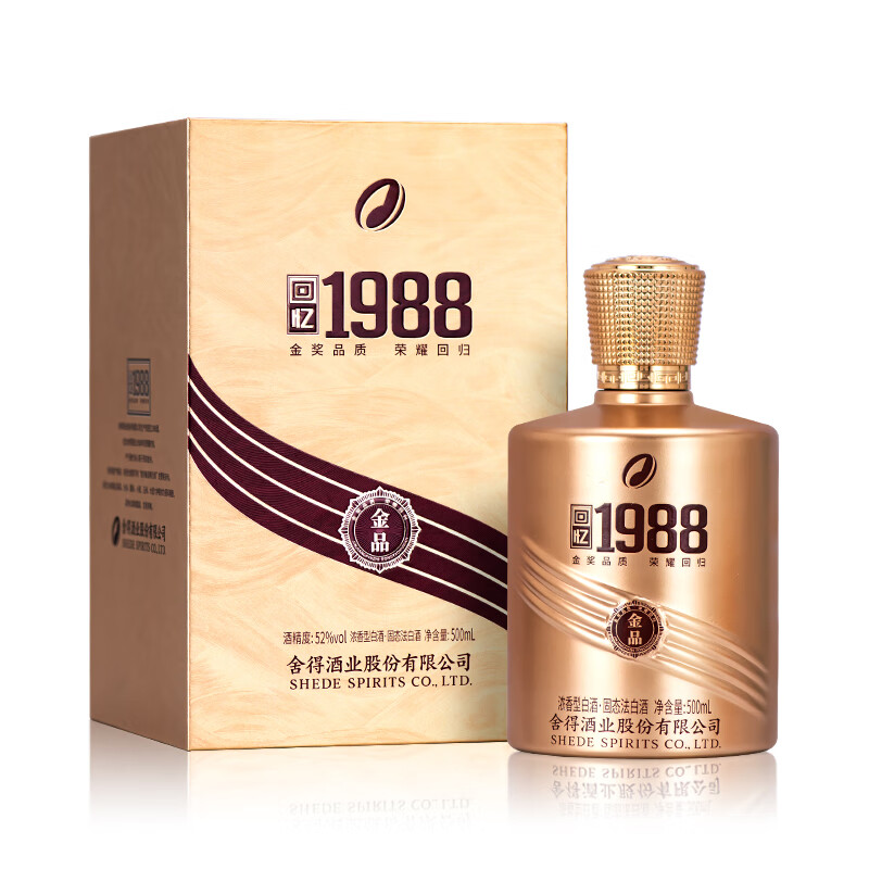 J-【热评1000+】舍得回忆1988 金品 舍得酒业股份出品 智慧人生品味舍得 52度浓香型白酒 500ml/瓶 单瓶礼盒装两瓶附赠手提袋