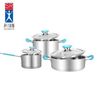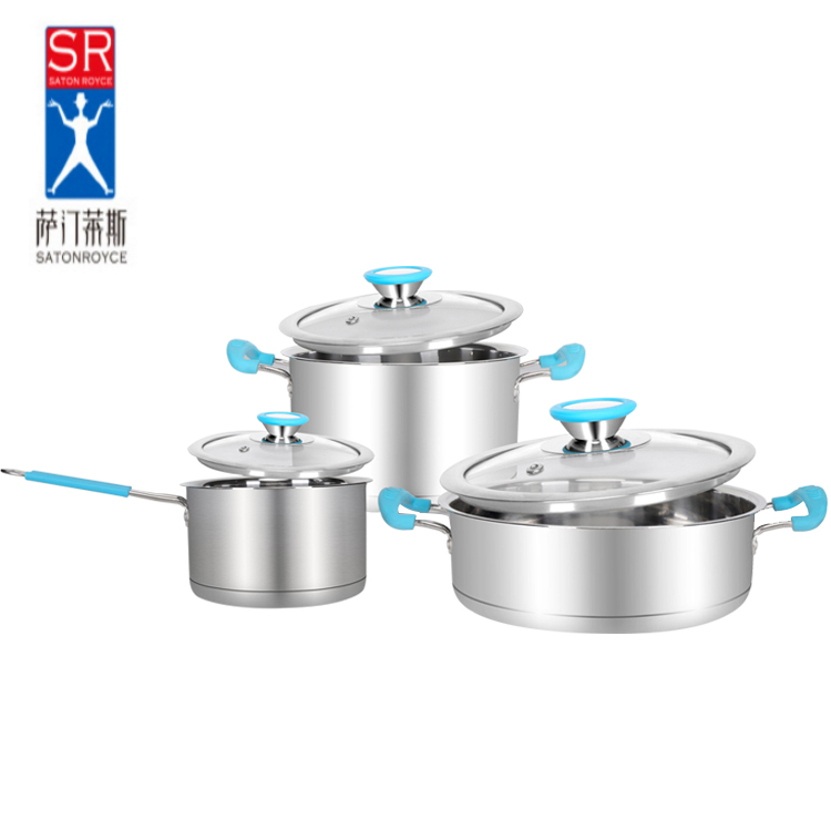 T-萨汀莱斯 奈杰尔-豪华六件套厨房不锈钢奶锅汤锅多用锅烹饪炊具电磁炉燃气组合 厨具 锅具三件套+3个锅盖 (6套/箱)