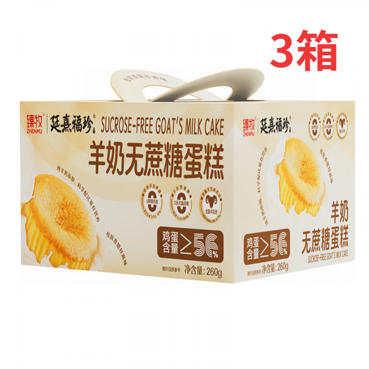 臻牧羊奶无蔗糖蛋糕 食品休闲充饥糕点饱腹健康早餐面包 260g*3箱 6977853980015 偏远另加运费
