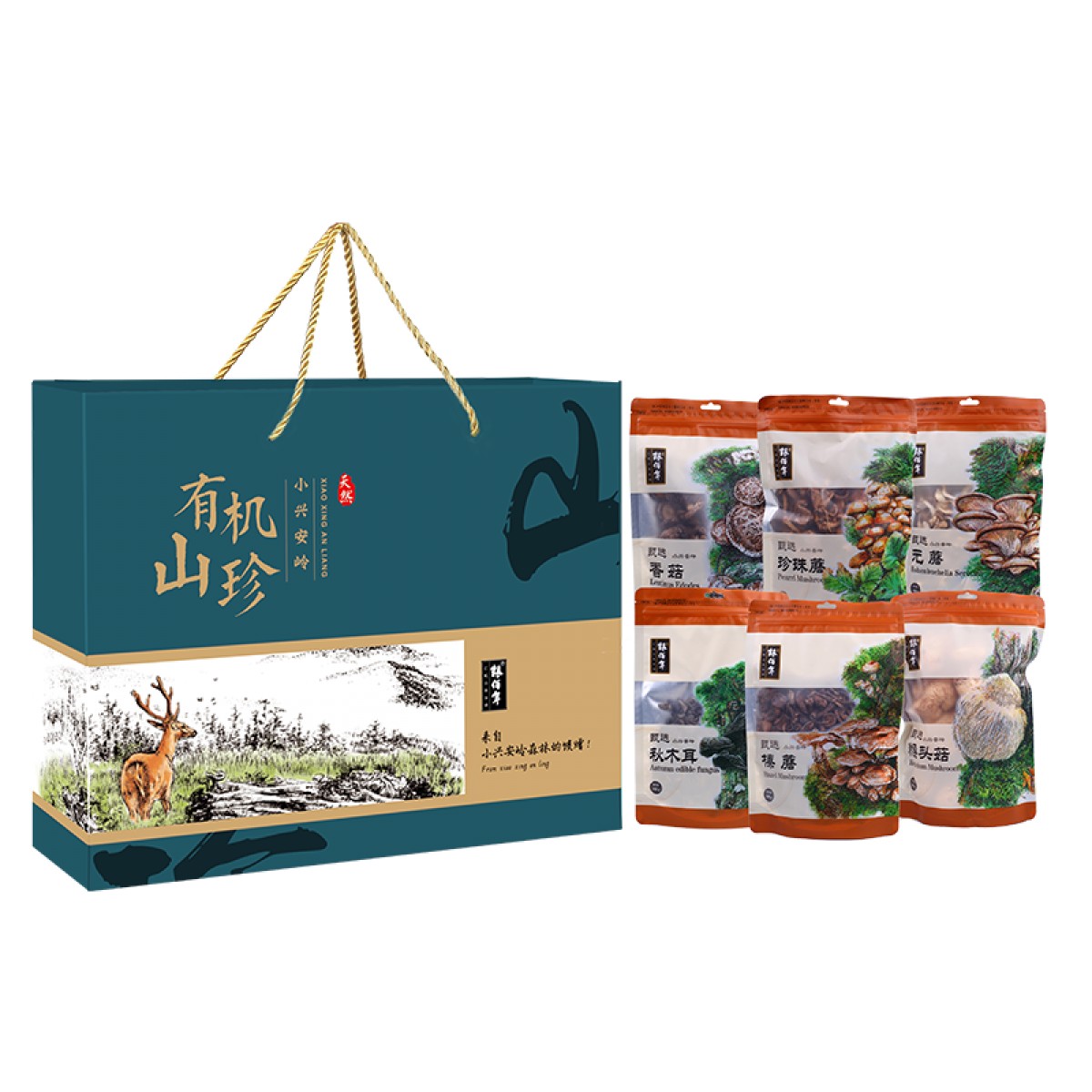 粮佰年有机山珍礼盒菌菇组合600g 小兴安岭菌菇礼盒 有机秋木耳 有机猴头菇 6970893860415
