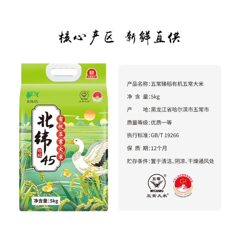 北纬45 五常禧稻 五常大米 5kg 6972795891498 偏远地区另算运费