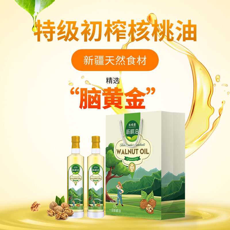 福益德 冷榨亚麻籽油500ml*2瓶 礼盒