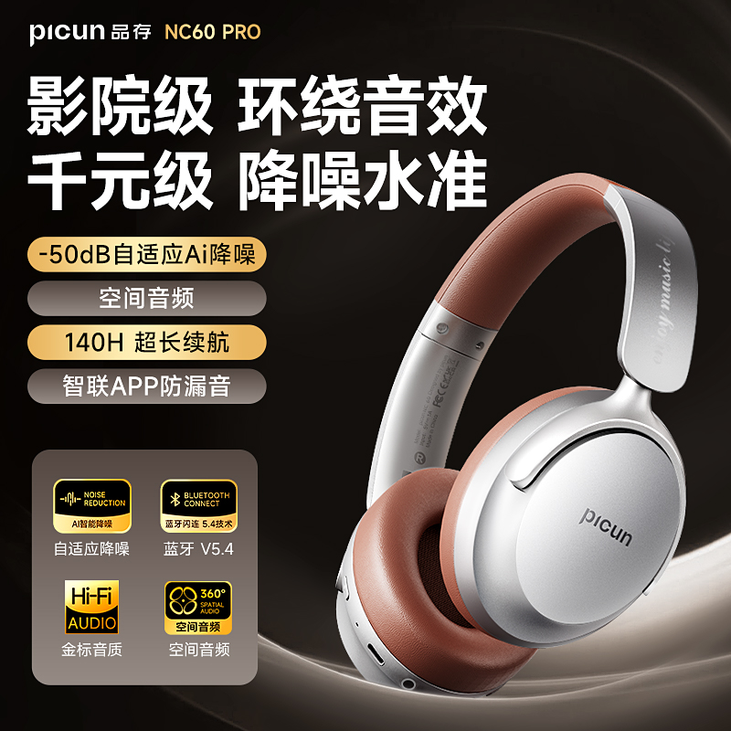 品存(picun) AI降噪头戴式防漏音无线耳机 NC60 Pro复古棕 6970604903677 偏远加运费