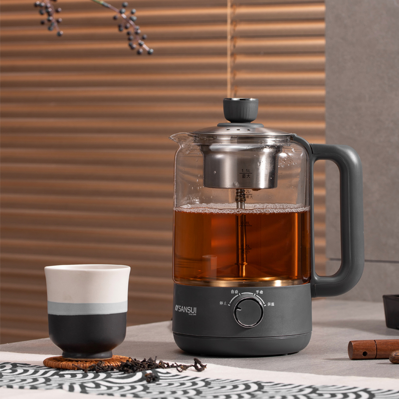 铭仕朗(MINSLAN)养生壶 玻璃面板烧水壶 304不锈钢恒温煮茶器 加大滤网 .HT-2307A 深灰色 1.5L 697741130166