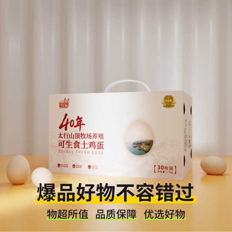 天凯太行山顶牧场养殖可生食土鸡蛋(1.5kg/30枚)