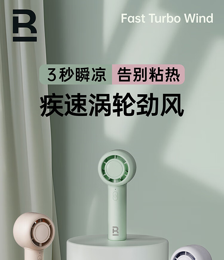 标若 涡轮手持风扇D13 粉/棕/绿/白 可选下单备注颜色