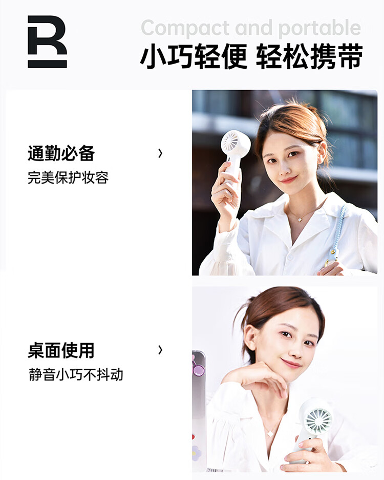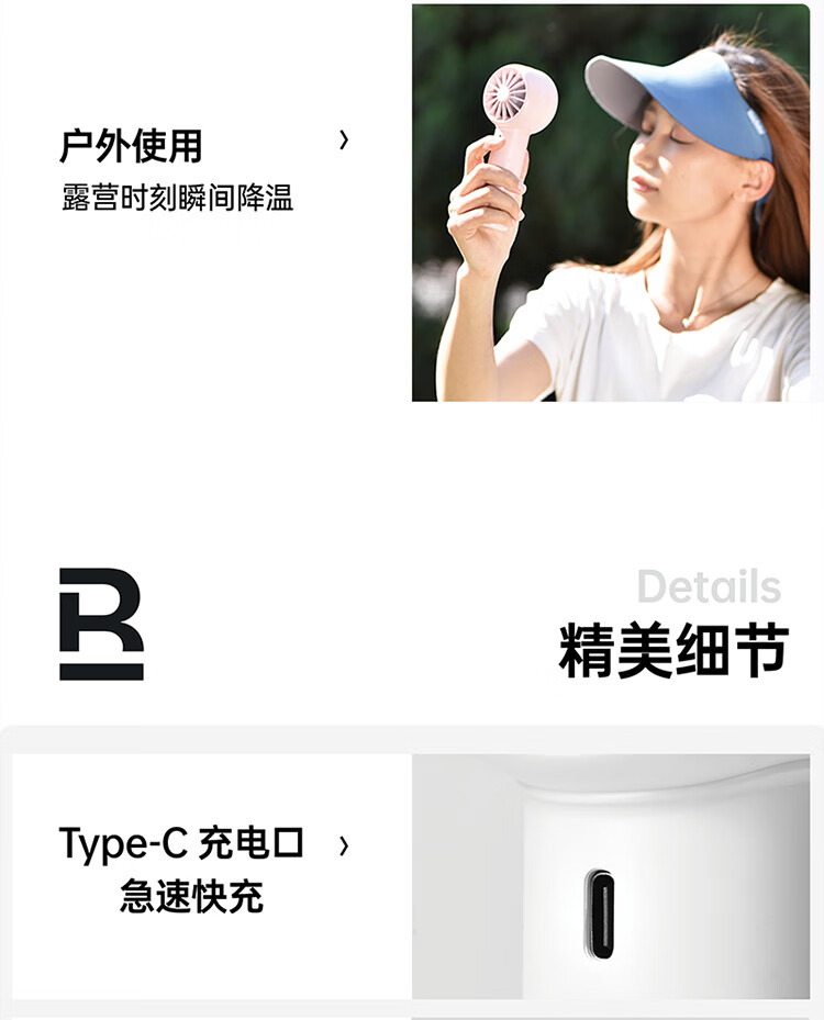 商品名称:标若 涡轮手持风扇D13 粉/棕/绿/白 可选下单备注颜色