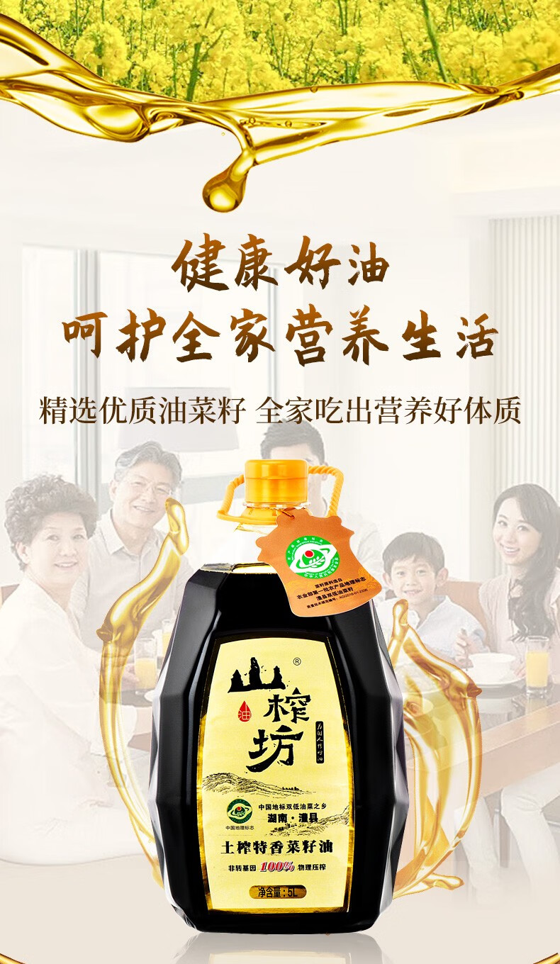商品名称:山榨坊 土榨特香菜籽油5L 6972802010324
