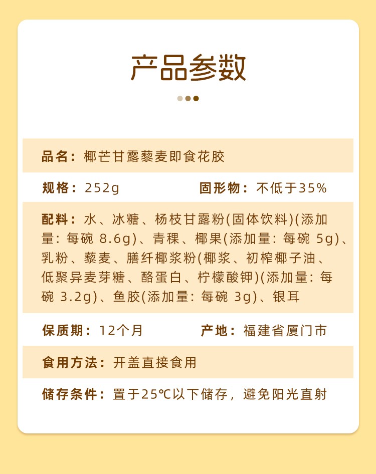 商品名称:禾煜小禾说椰芒甘露藜麦即食花胶252g 6956258111040