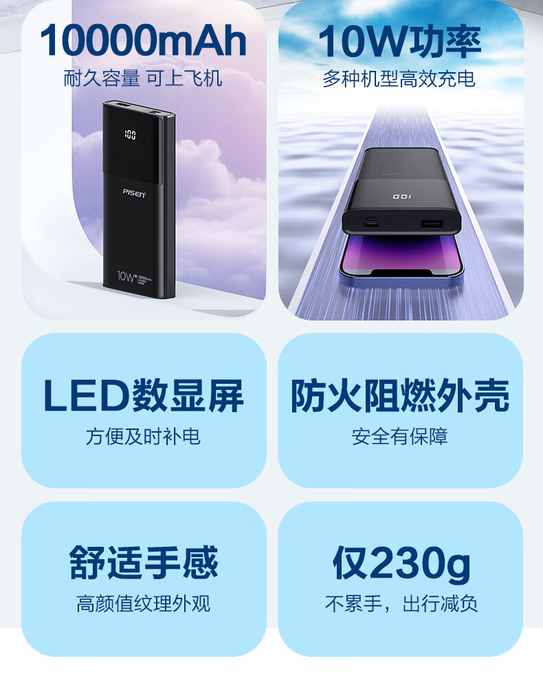 品胜 移动电源10W LED电库10000 TP-D33 苹果白