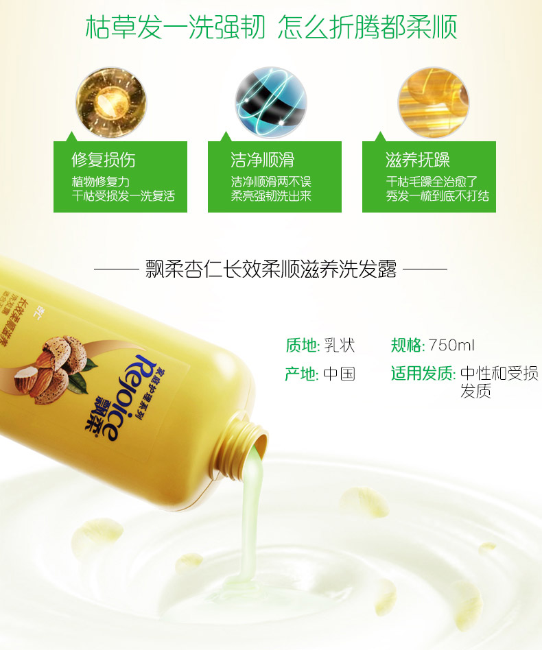 商品名称:集采 飘柔日常护理双效滋润柔顺型洗发露750g 6903148108338