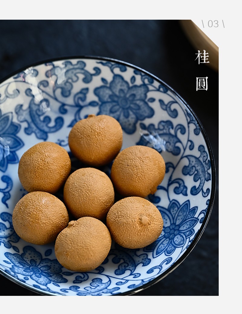 柿子*2(1黄1绿)、板栗*2、红枣*5、桂圆*4、白果*6、竹编小箩筐
