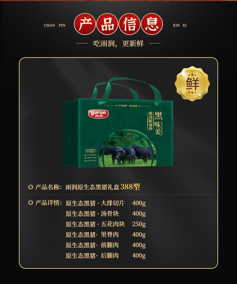商品名称:雨润 原生态冷冻黑猪肉388型 2250g