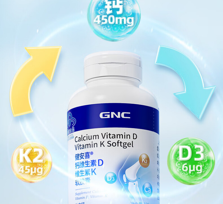 商品名称:健安喜 钙维生素D维生素K软胶囊180粒 6947668411202