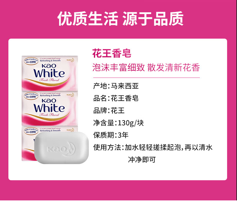 商品名称:花王香皂玫瑰粉色130g*3块 4901301232397 偏远区域另加运费