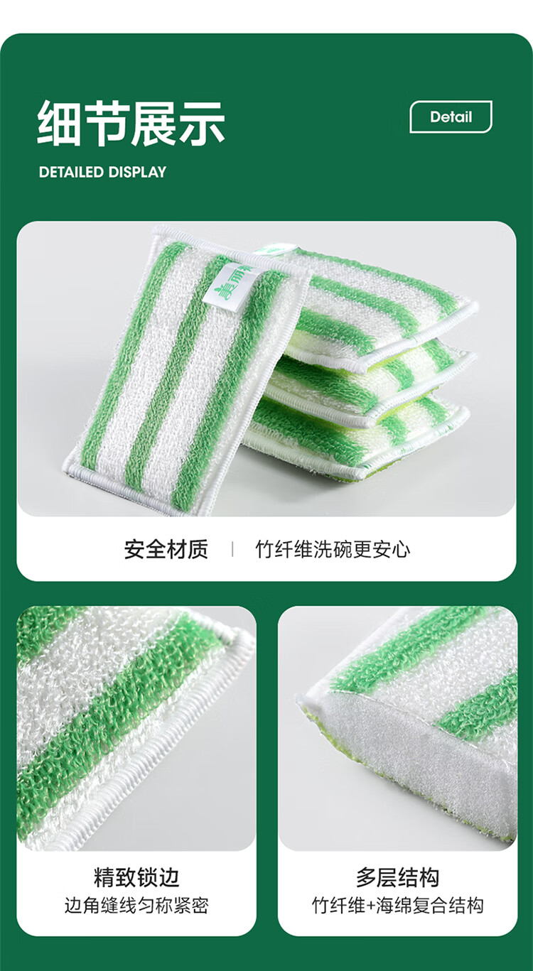美丽雅 竹纤维洗碗擦3只装 HC059863 6923074059863