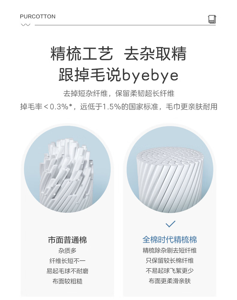 集采 全棉时代浴巾轻时光系列纯棉家用吸水柔软速干浴巾 轻时光蓝 70cm*140cm