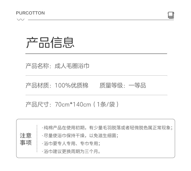 商品名称:集采 全棉时代浴巾轻时光系列纯棉家用吸水柔软速干浴巾 轻时光蓝 70cm*140cm