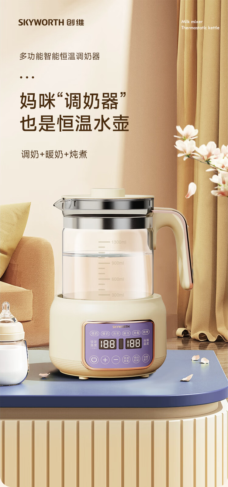 创维S157养生壶 1.3L多功能婴儿冲泡奶粉热水壶 温奶暖奶器玻璃水壶 S157养生壶