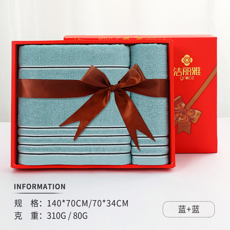 商品名称:集采 洁丽雅面巾浴巾 两件套 140*70CM/70*34CM 红色/蓝色 下单备注颜色