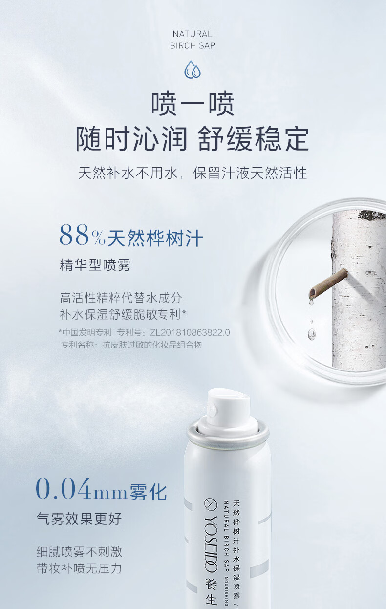 商品名称:养生堂天然桦树汁补水保湿喷雾300ml 6972230460258