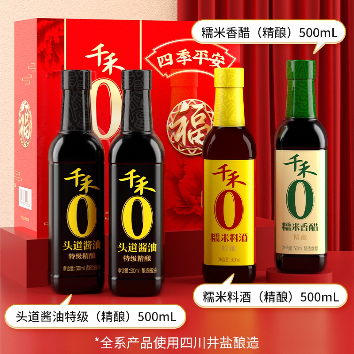 千禾四季平安精酿礼盒 0添加酱油料酒香醋调味品礼盒 500ml*4 6928312902536