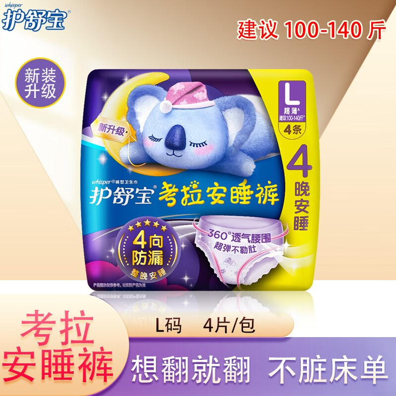 商品名称:集采 护舒宝考拉安睡裤夜用裤型卫生巾4片 M/L/XL下单备注尺码