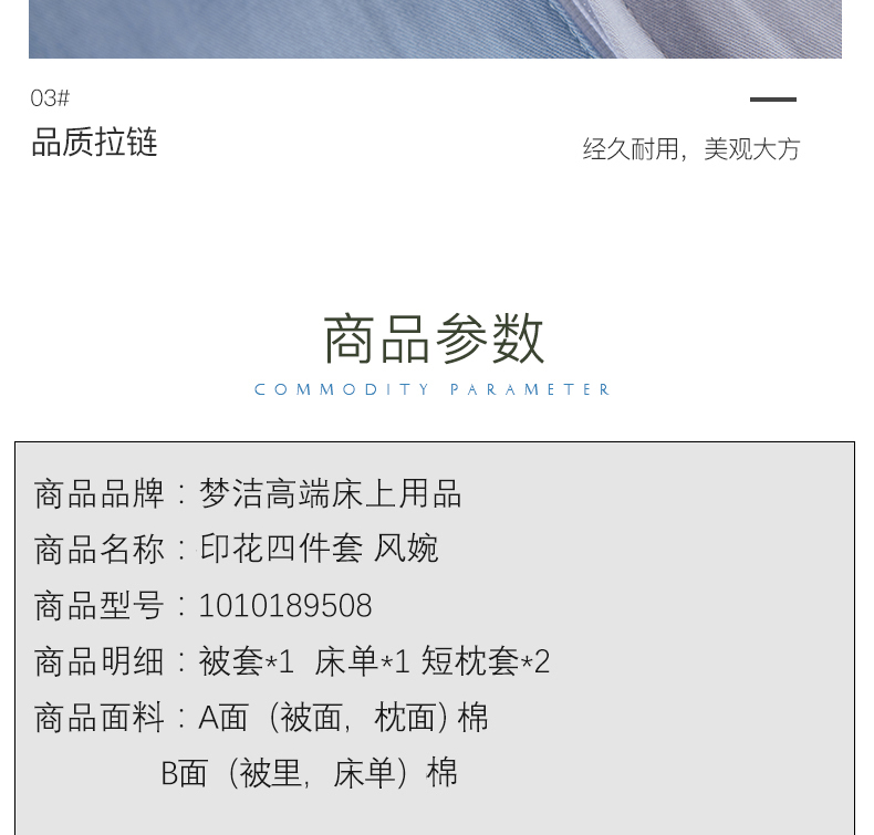 商品名称:梦洁 纯棉印花四件套 风婉 150*200cm 6909338895088
