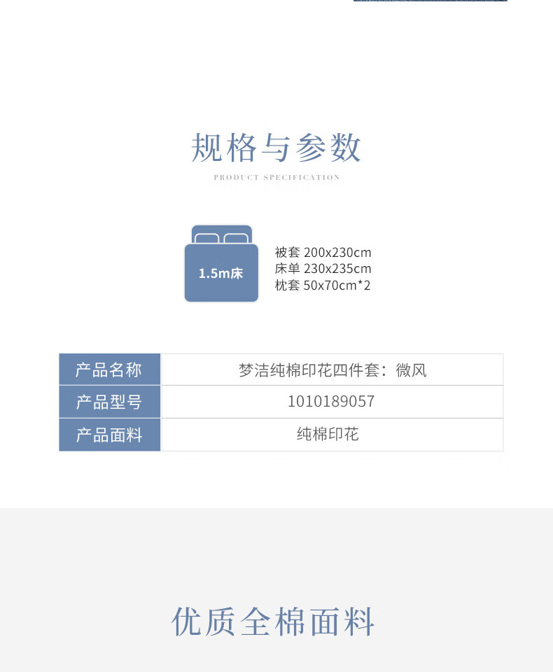 商品名称:梦洁 纯棉印花四件套:微风150*200cm 6909338183192