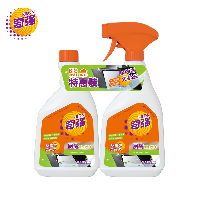 商品名称:奇强 商城厨房重油污净500g*2 白色 6907917225615