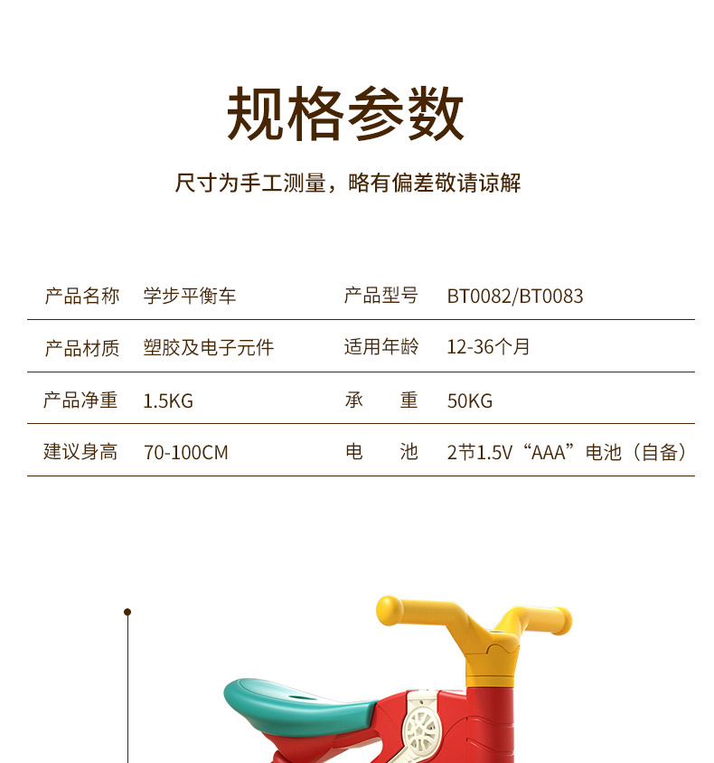 商品名称:童启萌活力平衡车BT0083(活力红黄绿)