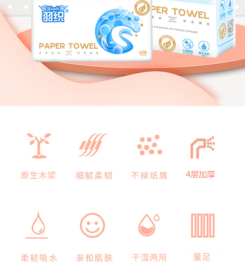 商品名称:羽织 原生木浆408张(4层)3连包抽 130mm*180mm YZ-9972 6971900929972