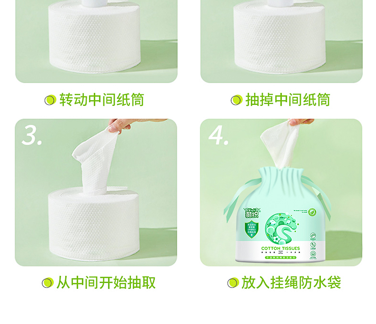 商品名称:羽织 天鹅干湿两用棉柔洁面巾200克卷筒式83片200mm*200mm YZ-9934 6971900929934