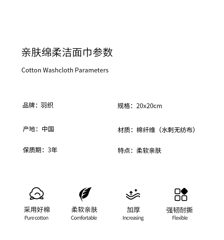 商品名称:羽织 干湿两用棉柔洁面巾250克卷筒式102片200mm*200mm YZ-9927 6971900919927
