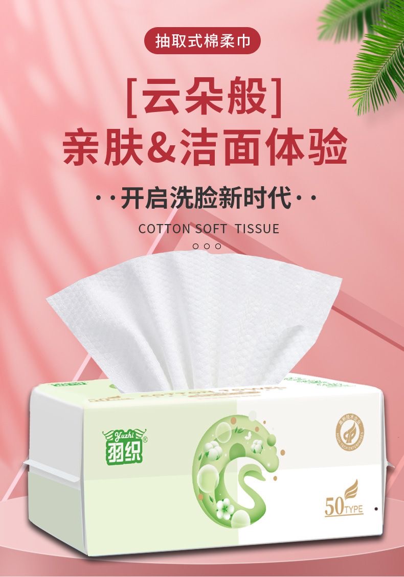 羽织 干湿两用抽取式120棉柔洁面巾50片(绿色)120mm*200mm YZ-9811 6971900929811