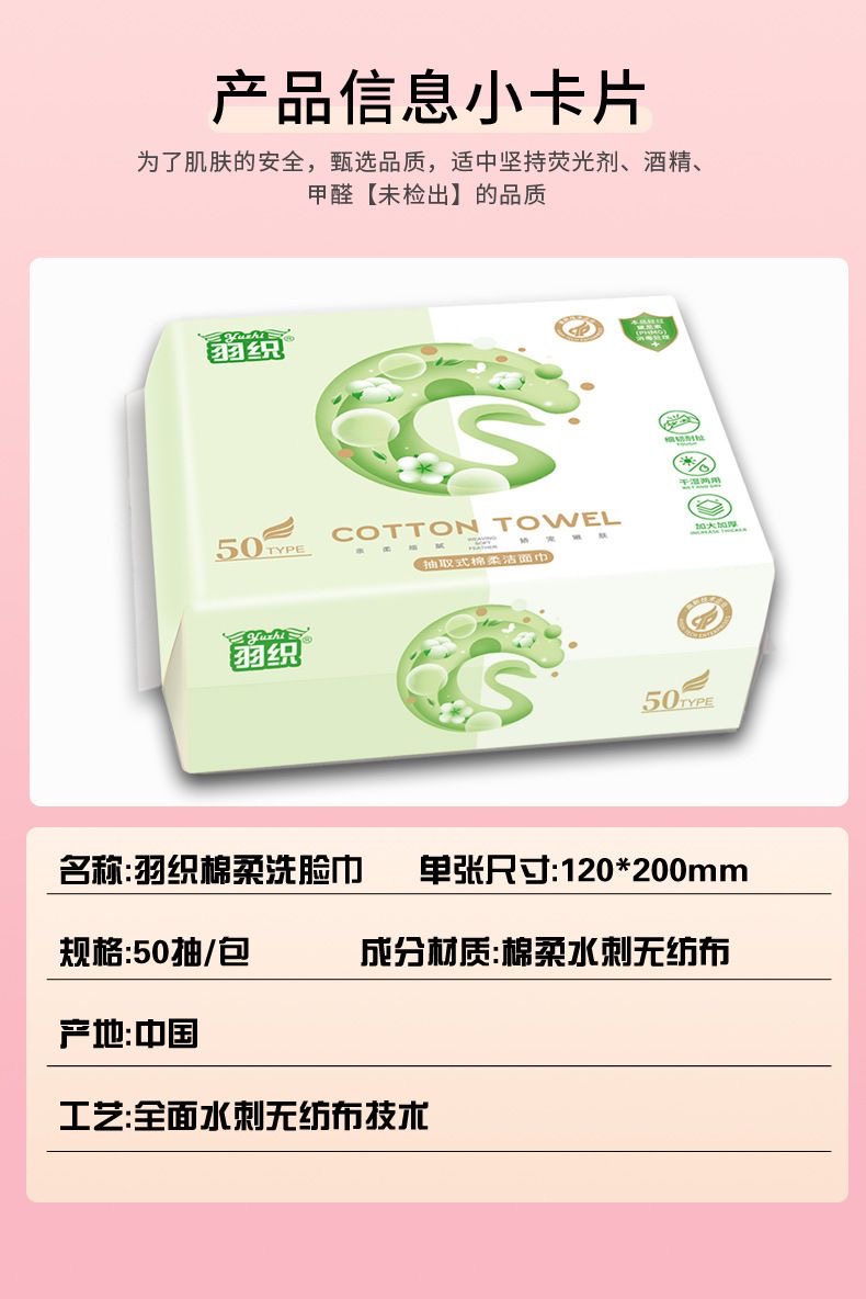 商品名称:羽织 干湿两用抽取式120棉柔洁面巾50片(绿色)120mm*200mm YZ-9811 6971900929811