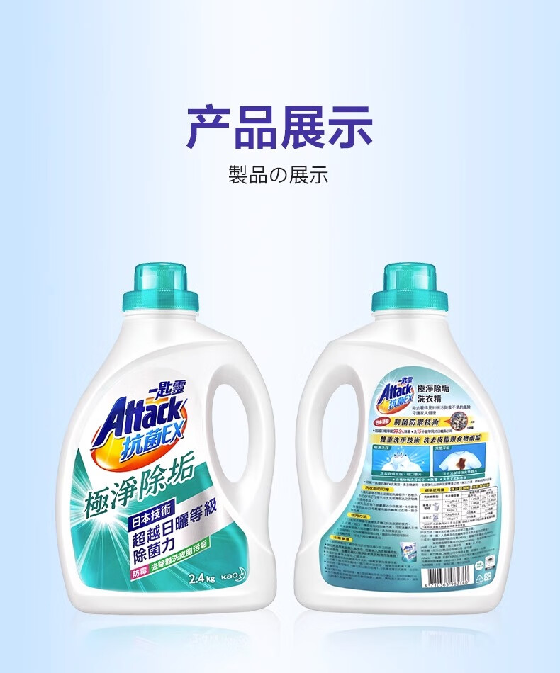 商品名称:花王一匙灵抗菌EX极净除垢超浓缩洗衣精(2740)2.4kg 4710363982740