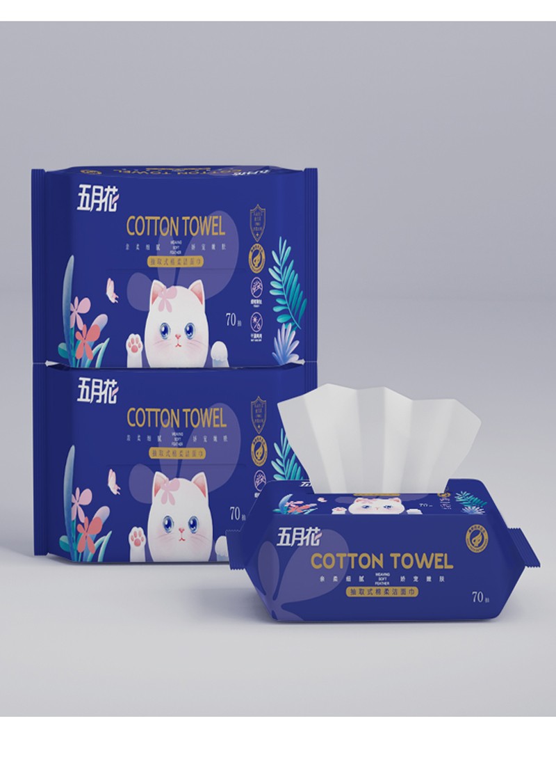 五月花 干湿两用抽取式洗脸巾70抽 200mm*200mm A19SM35 6922233640300