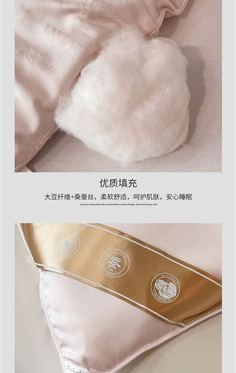 商品名称:杉杉(FIRS)QFS-23036臻棉提花蚕丝大豆被 200*230cm 粉/白 下单备注颜色 6970609706549