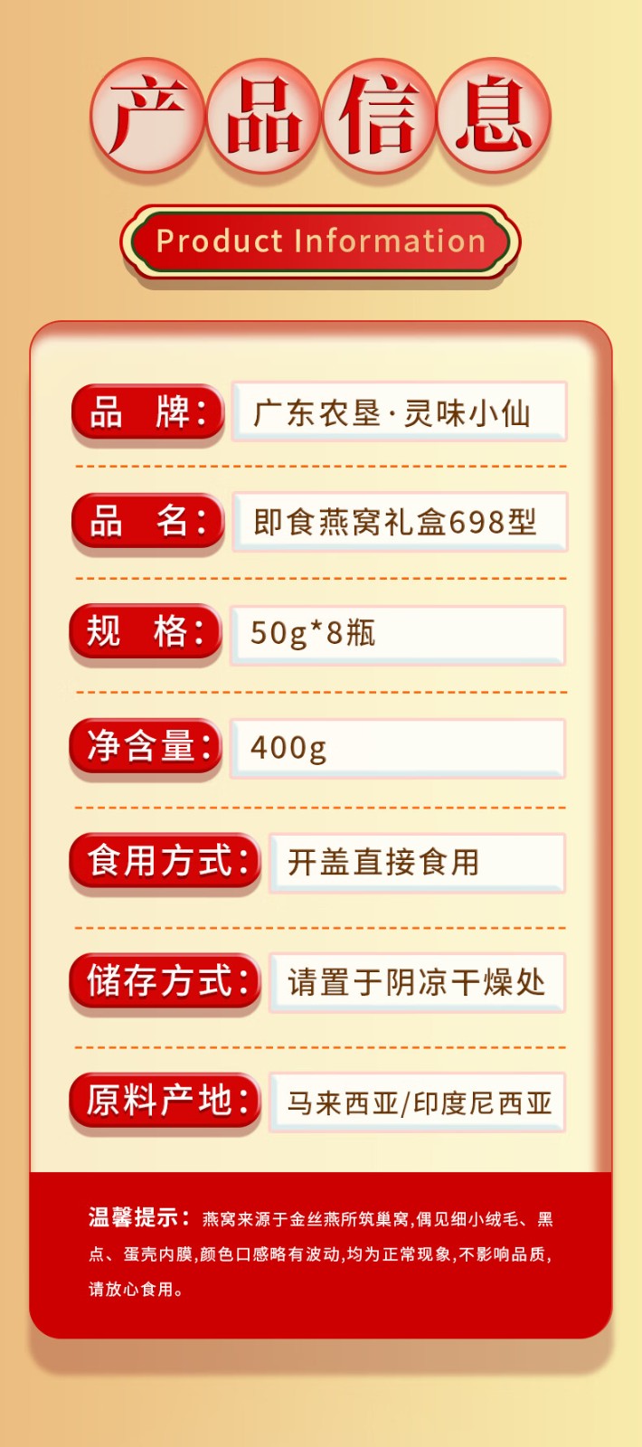 商品名称:广东农垦灵味小仙即食燕窝礼盒 50g*8 6975157641533