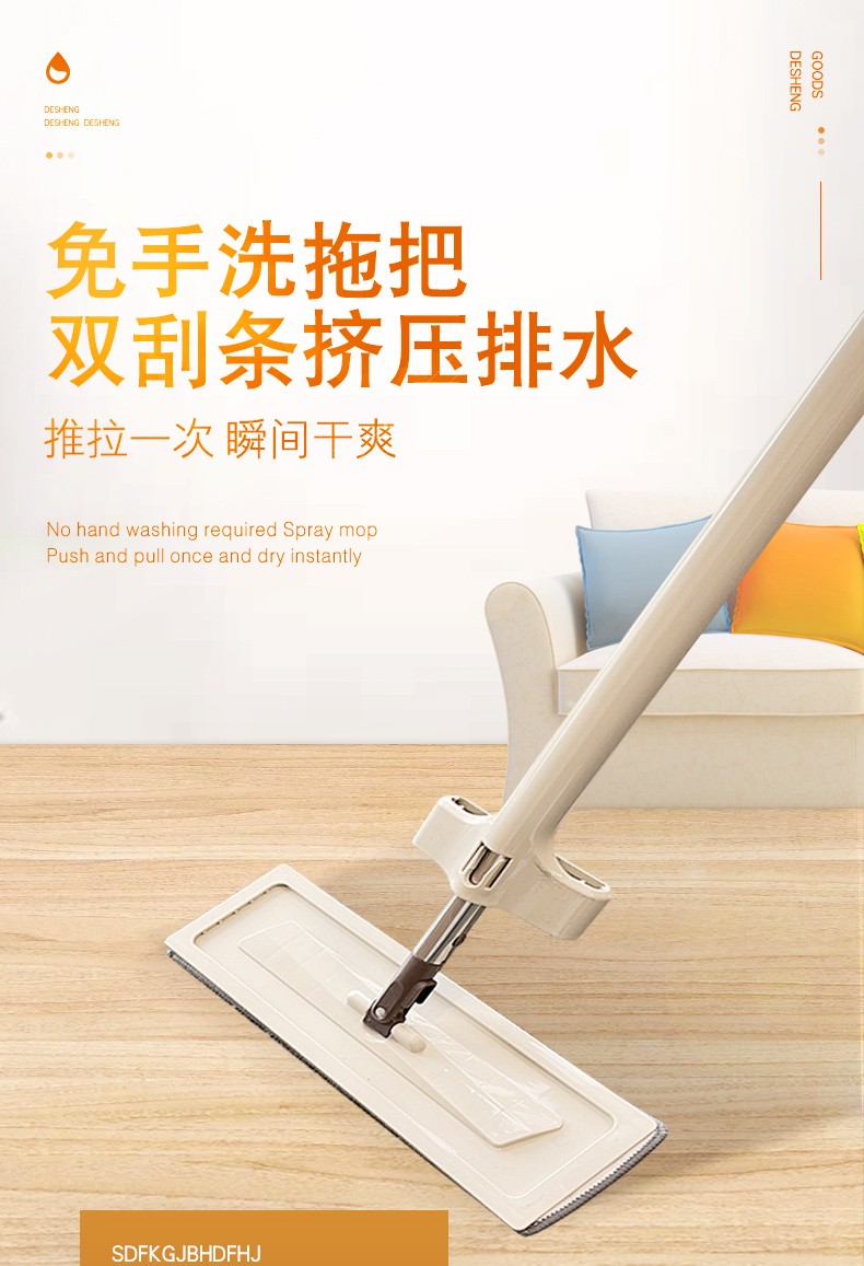 商品名称:德升DESECCI 免手洗平板拖把懒人擦地拖把2块拖布自挤水拖地神器 米色 DS-TB303
