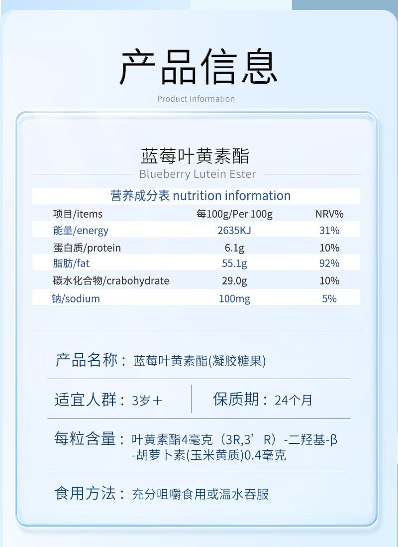 商品名称:乐佳善优蓝莓叶黄素酯60粒*2盒 儿童型/青少年 偏远另加运费