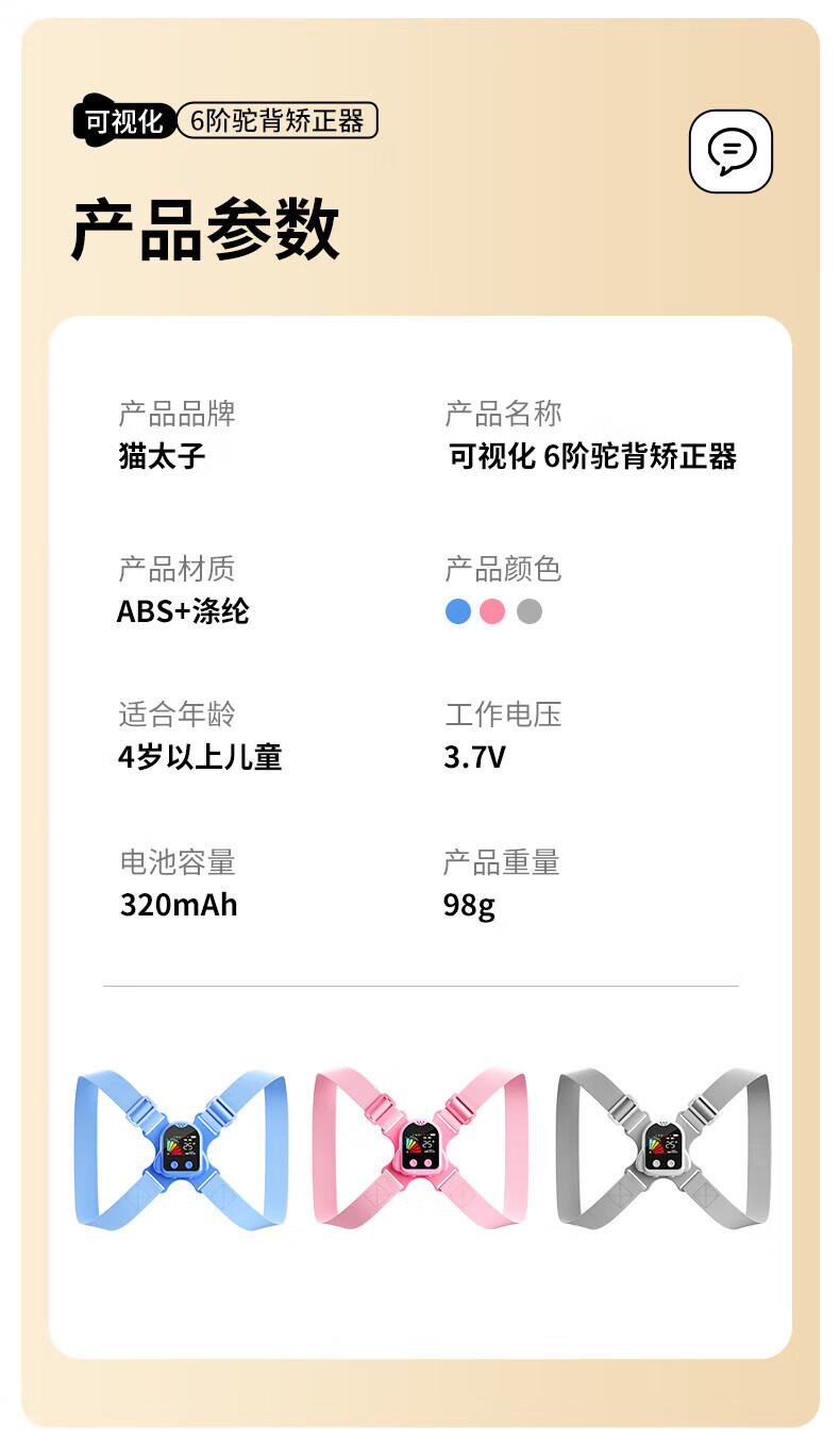 商品名称:猫太子 坐姿卫士A40 可视化智能矫姿带 10103M8131A/B/C 静谧蓝6921824585204/淡雅粉6921824585211/高级灰6921824585228下单备注颜色