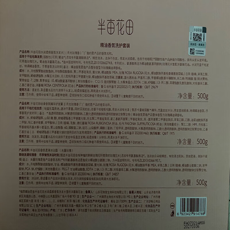 商品名称:半亩花田精油香氛洗护套装500g+500g+500g 6923427914788