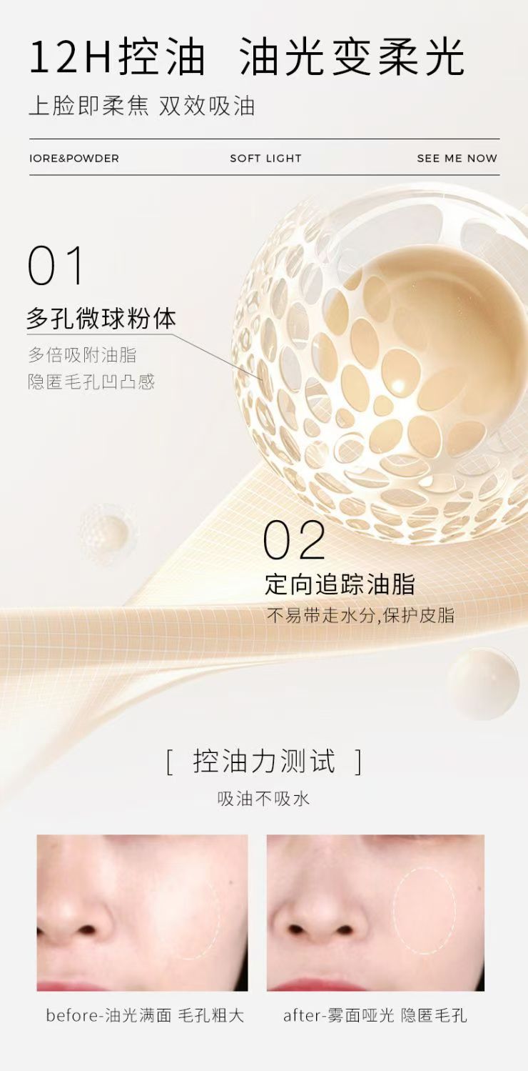 商品名称:iore丝绒柔光控油定妆粉饼03自然白